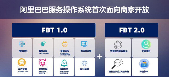 针对品牌商家不同的赛道和发展阶段,阿里巴巴CCO也向品牌方大规模开放服务能力,推出FBT即“把服务交给阿里”的商家赋能创新项目,成为品牌创造新增量的“秘密武器”。