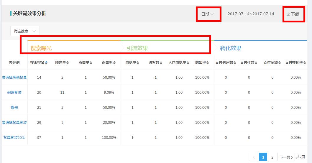 看不清楚的可以点击旁边的下载,我们在表格里能清楚的看到引流效果,这里会出现一种情况,如果是引流下降幅度特别大的词你需要好好注意了。